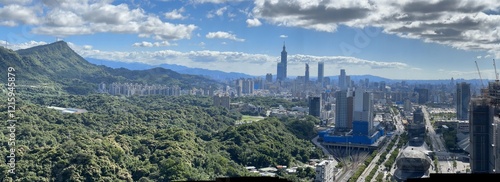Fototapeta premium View of the Taipei horizon as seen from Nangang district -- the city's modern...