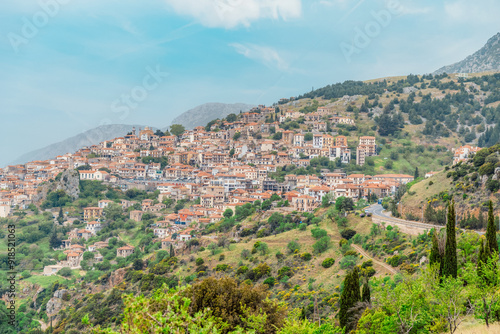 © Zedspider, Fototapeta premium View of the town Arachova, Greece, near Parnassus mountain and Temple of Delphi.