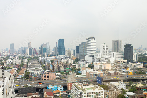 Fototapeta premium View of the traffic and all building on expressway in bangkok close to the...