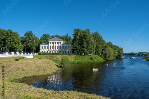 Obraz premium View of the Uglich Museum with white columns and the Stone Stream.