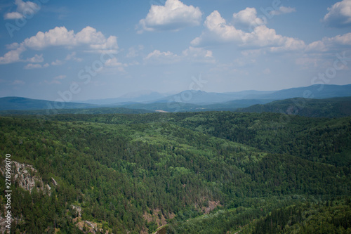 © KseniyaK, Fototapeta premium view of the Ural mountains in sunny weather from the mountain