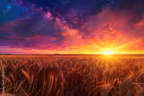 © Jacek, Obraz premium View of the vast wheat field under an enchanting starry sky.