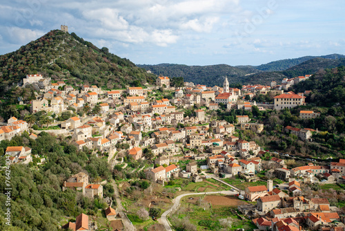 Fototapeta premium View of the village of Lastovo, located on the top of the hill on the...