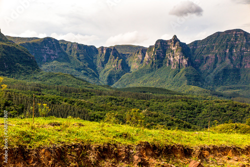 Naklejka premium View of the walls of the Espraiado Canyon from the Road of Corvo Branco, with dense forest ahead, Airue, Santa Catarina, Brazil