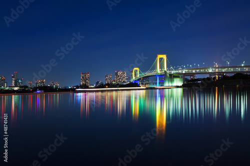 Naklejka premium View of Tokyo at night with Rainbow Bridge