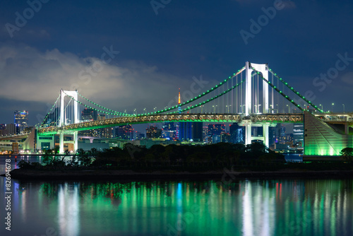 Obraz premium View of Tokyo Bay and Rainbow Bridge at Night