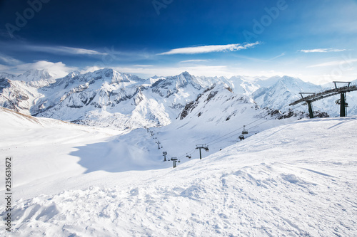 Fototapeta premium View of Tonale ski resort with Rhaetian Alps, Tonale pass, Italy, Europe