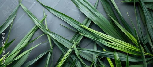 © Emin, Obraz premium View Of Top Lemongrass Leaves In Grey Background