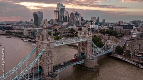 Fototapeta premium View of Tower Bridge at pinky dreamy sunset in London