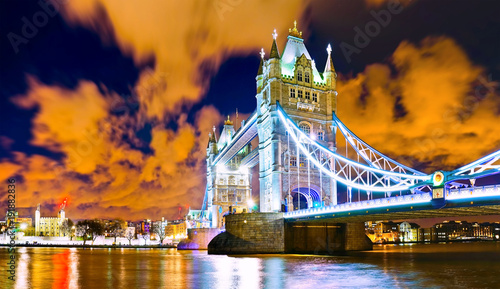 © Javen, Naklejka premium View of Tower Bridge in London at night