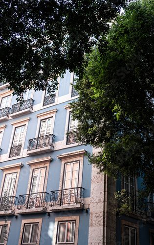 © Michaella, Naklejka premium View of traditional Portuguese apartments from a green garden. Taken in Lisbon in summer.