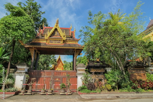 Obraz premium view of traditional Sala Thai and gable front of buddhist temple around with...