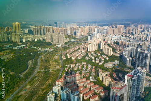 © Steve, Fototapeta premium View of urban high-rise buildings in Nanning, Guangxi, China from above