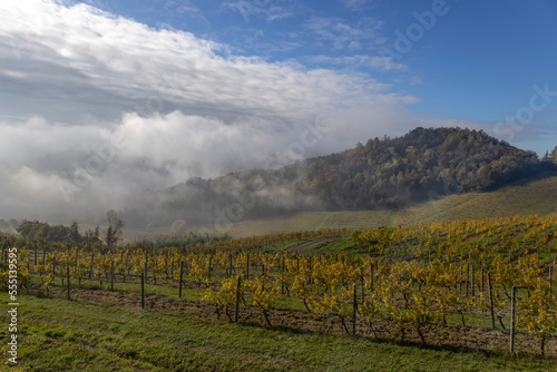 © faber121, Fototapeta premium View of vineyards in autumn in Piedmont, Italy