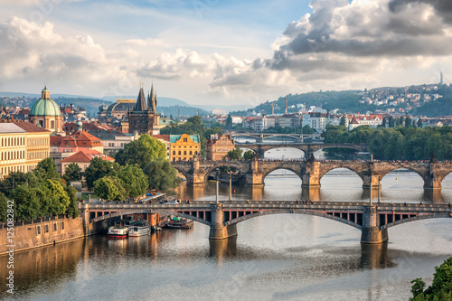 © Valerie2000, Fototapeta premium View of Vltava river with bridges in Prague