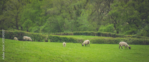 © Pav-Pro Photography , Fototapeta premium View of white sheep grazing on the green field