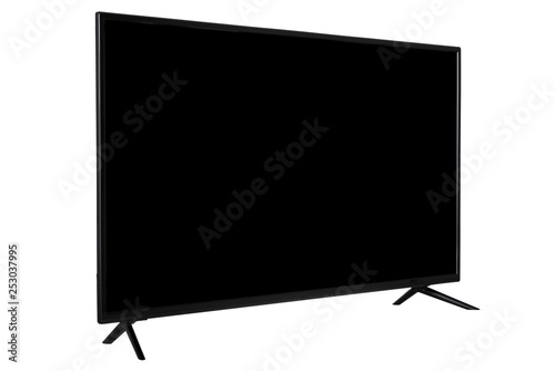 © shkliarov, Naklejka premium View of widescreen internet tv monitor isolated on white background