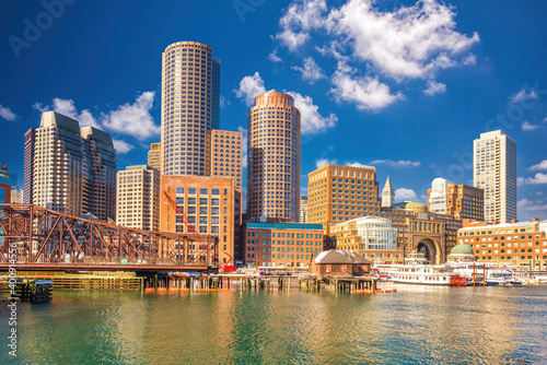 © sborisov, Fototapeta premium View on Boston city center at sunny day