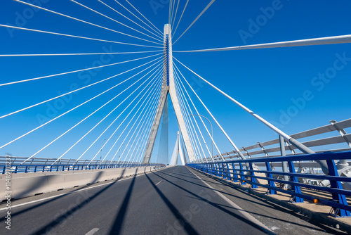 Obraz premium View on cable-stayed bridge with high pylons across the Bay of Cadiz, linking Cadiz with Puerto Real in mainland Spain