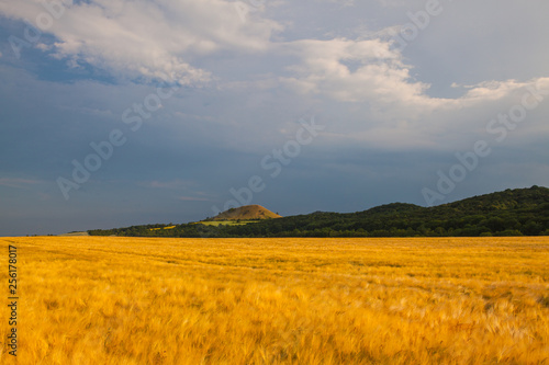 Obraz premium View on Cicov hill in Czech Bohemian Highlands before storm.