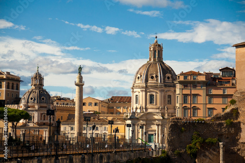 Obraz premium View on column of Traijan, church Santa Maria de Loreto, Trajan Forum and...