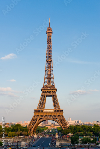 © Valeri Luzina, Fototapeta premium View on Eiffel Tower at sunset, Paris, France