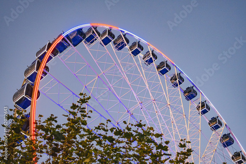 Fototapeta premium View on Ferris wheel in the old part of the town at dusk. High quality photo
