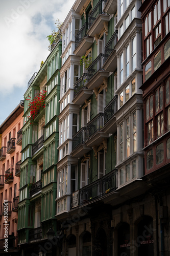 © barmalini, Fototapeta premium View on houses in old part of Bilbao city, Basque Country, North Spain