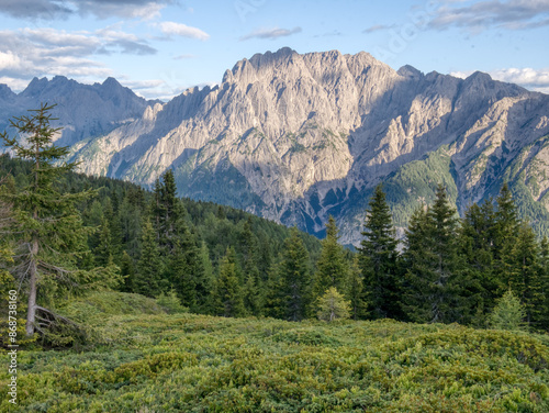 Fototapeta premium View on Lienzer Dolomiten mountains in the Osttirol region on a summer late...