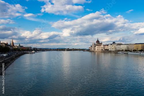 © demofotos, Obraz premium View on Margaret bridge, Danube and parliament in Budapest