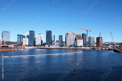 Naklejka premium View on modern district with lux apartments and restaurants in Oslo, Norway