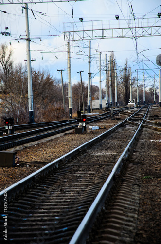 © ihorbondarenko, Fototapeta premium View on railroad track on autumn