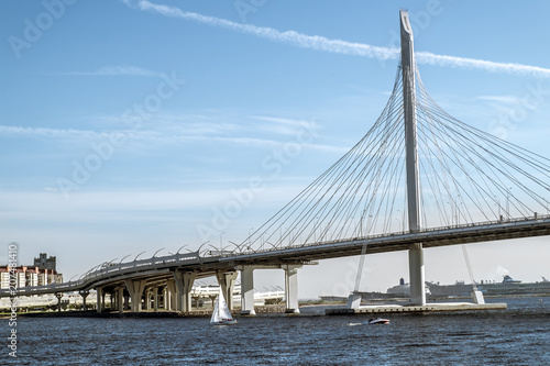 Obraz premium View on ring road and cable bridge on Vasilievsky island.