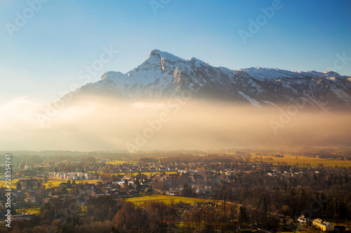 Fototapeta premium View on Salzburg and Untersberg mountain, part of Berchtesgaden Alps
