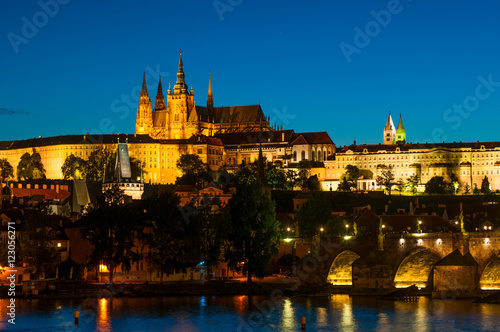 Fototapeta premium View on St.Vitus cathedral in Prague Castle at night, Czech Repu