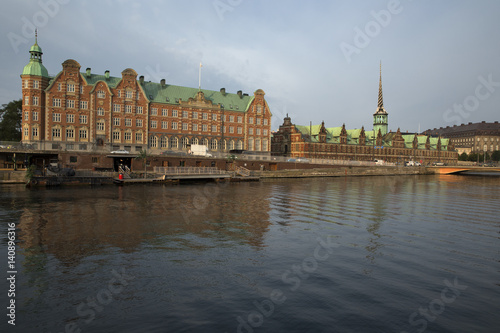 © vkph, Obraz premium View on Stock Exchange over the channel in Copenhagen, Denmark