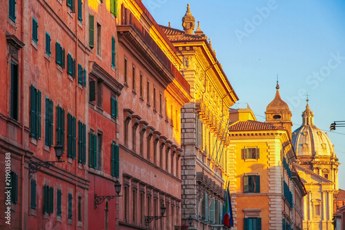 Fototapeta premium View on the ancient buildings and a historic church in Rome, Italy on a sunny...