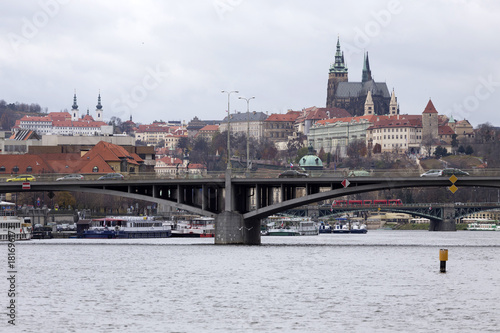 Fototapeta premium View on the autumn Prague gothic Castle above River Vltava, Czech Republic