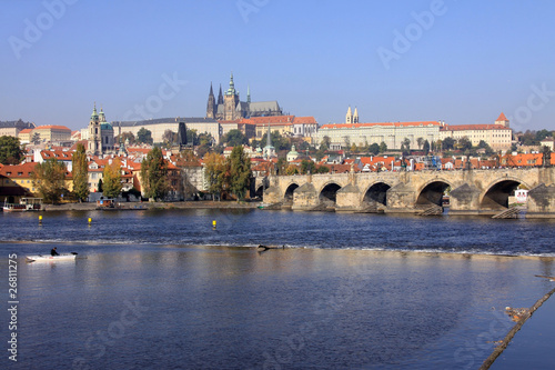 Obraz premium View on the autumn Prague gothic Castle with the Charles Bridge