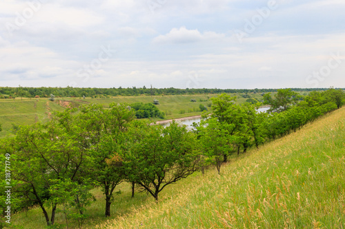 © olyasolodenko, Naklejka premium View on the irrigation canal on summer