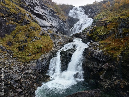 Naklejka premium View on the Norway landscapes from The Flam Railway train windows at autumn