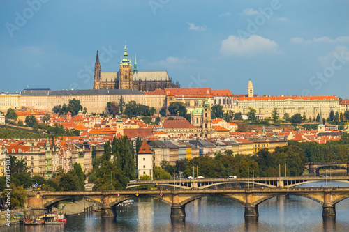 Fototapeta premium View on the Prague Castle, Prazsky hrad in Czech, and Vltava river.