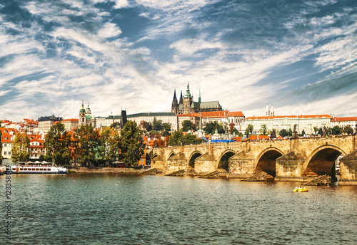 © vesta48, Fototapeta premium View on the Prague, Charles bridge and the Vltava river, Czech Republic