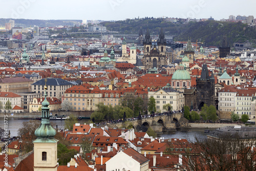 Obraz premium View on the spring Prague City with the green Nature and flowering Trees, Czech Republic