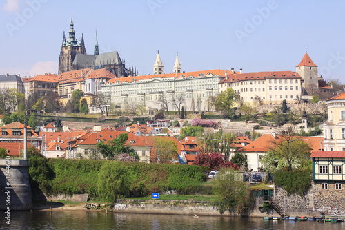 Fototapeta premium View on the spring Prague gothic Castle above River Vltava