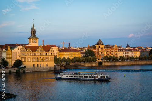 Naklejka premium View on the Vltava river and old town Prague, Czech Republic