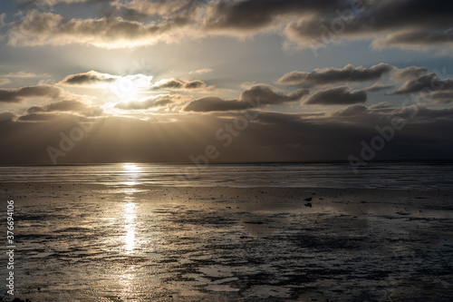 © Alexander, Fototapeta premium view on the wadden sea of the north sea at low tide at sunset near bernersiel