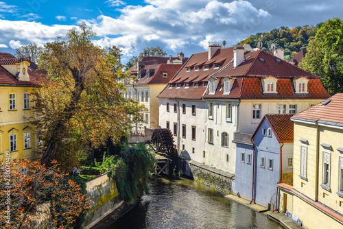© esvetleishaya, Fototapeta premium View on the waterwheel at the old mill on the Moldava millstream in Mala Strana Prague, Czech Republic