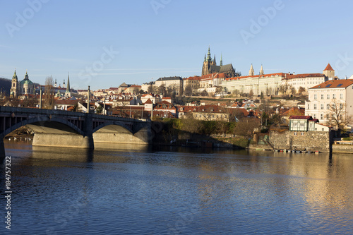 Obraz premium View on the winter Prague gothic Castle above River Vltava, Czech Republic