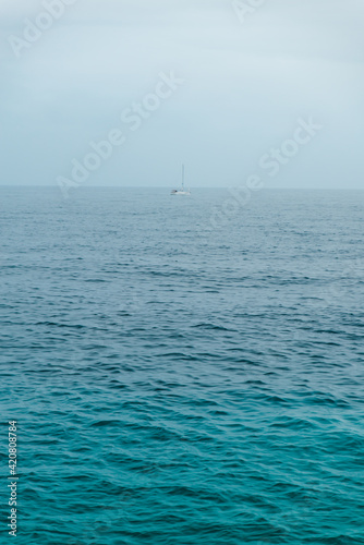 Obraz premium view on yacht boat in rainy overcast sea